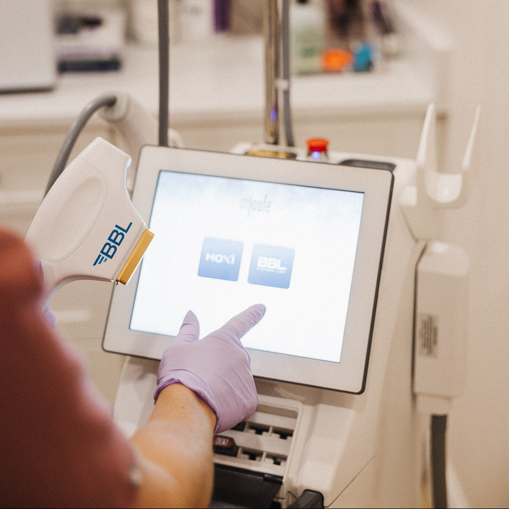 You can expect a mild warming sensation and the feeling of a slight rubber band snap against the skin. We use cooling gel throughout the treatment and a sapphire on the end of the BBL applicator will keep the skin cool and comfortable.