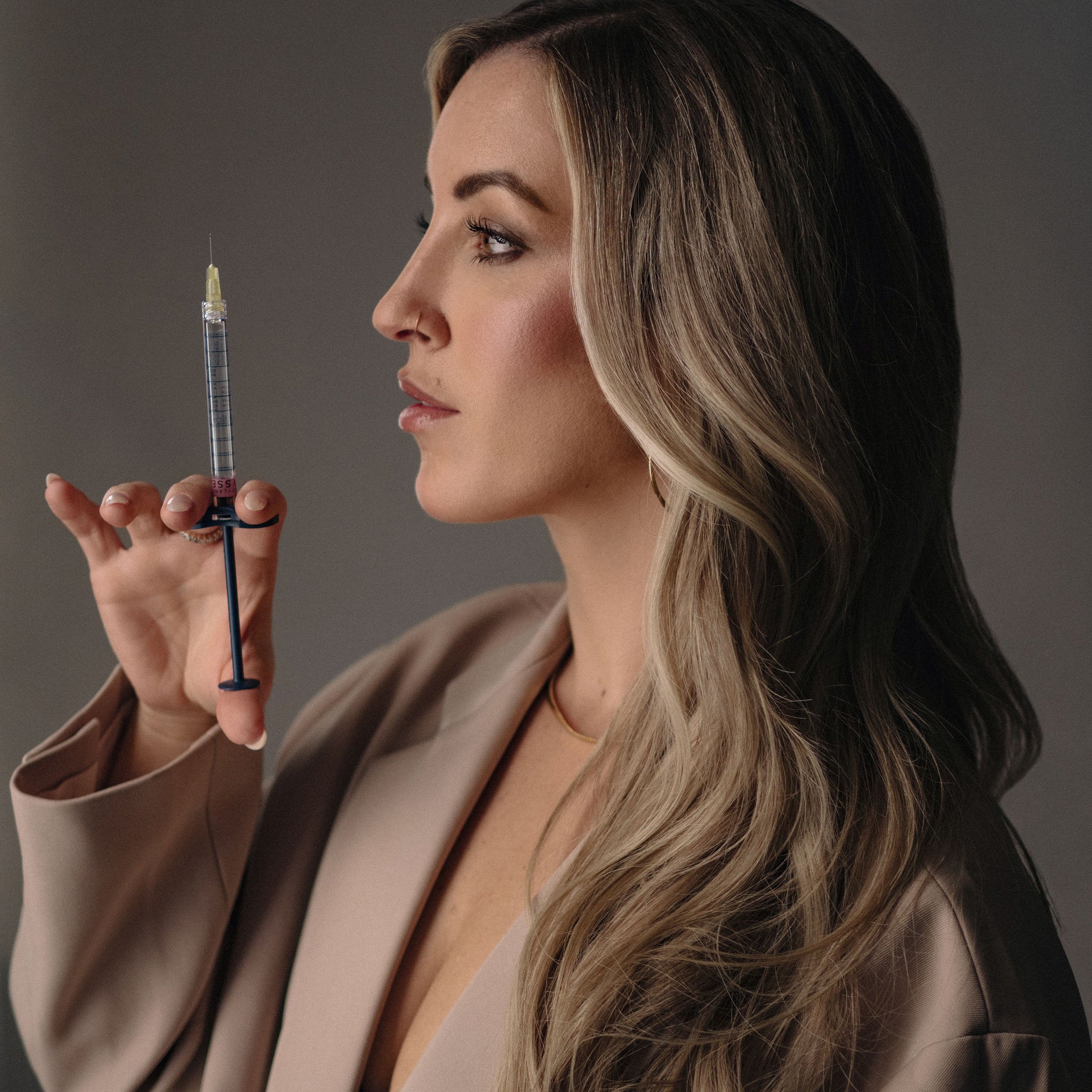 woman holding Sculptra injectables vial and box at Skin Design Aesthetics in South Shore, MA