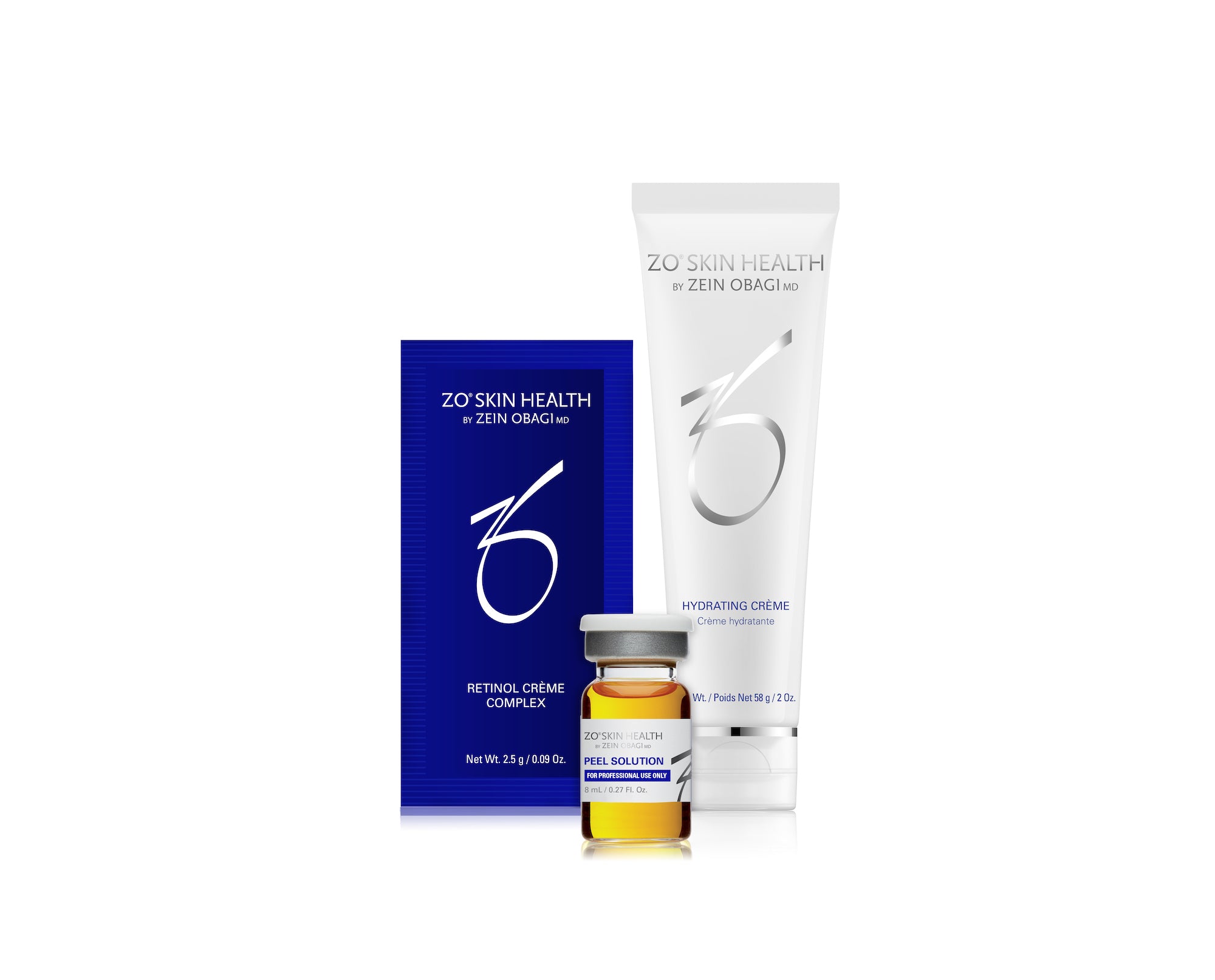The ZO 3-Step Peel is a medical-grade, medium-depth chemical peel by ZO Skin Health that exfoliates, stimulates collagen, and calms skin, treating pigmentation, texture, pores, and aging signs. It involves an in-office peel solution (salicylic, lactic, TCA acids) followed by a take-home 6% Retinol Cream and a Calming Cream, leading to noticeable peeling and flaking over several days, revealing smoother, brighter skin. It requires skin prep and post-care to reduce downtime and enhance results.